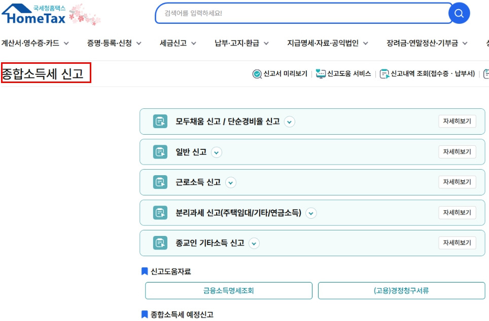 | 기타 | 세무대리인 대행 또는 ARS 1544-9944 이용 |