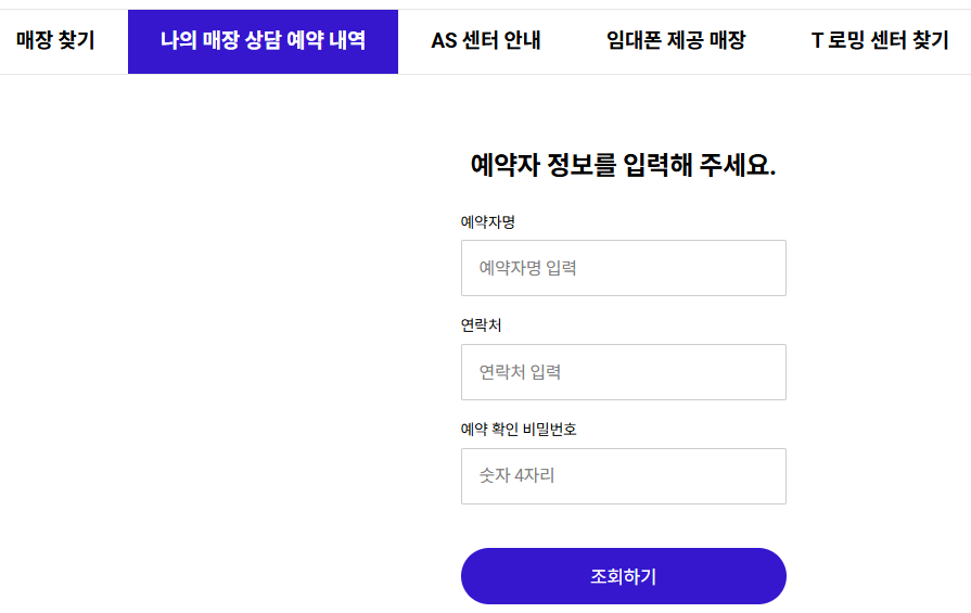 오른쪽 상단의 돋보기 아이콘 클릭 → "유심보호서비스" 입력
